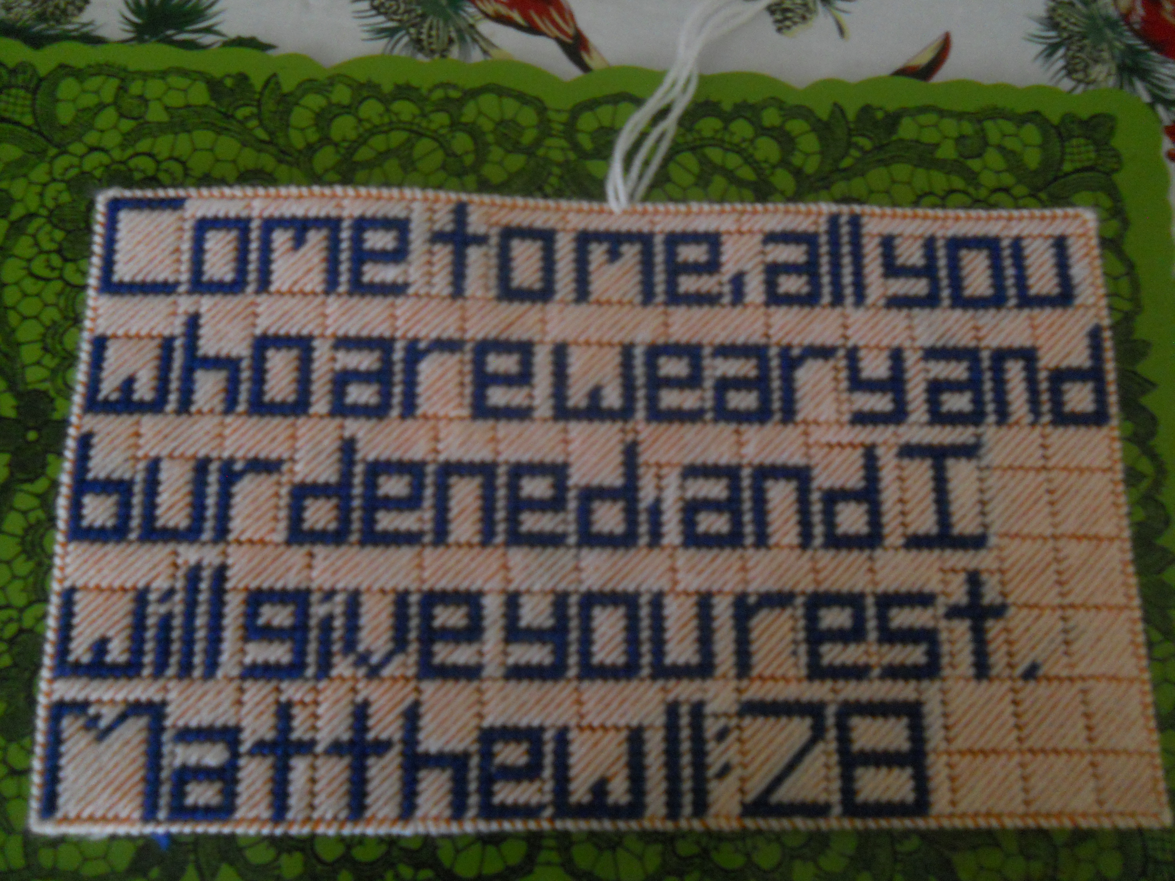 Needlepoint Wall Hanging:Matthew 11:28