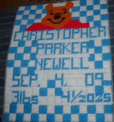 Needlepoint Baby Announcement are great baby shower gifts or keep for your little one. Please state the two colors that you would like and birth information. The size is 14 x1.