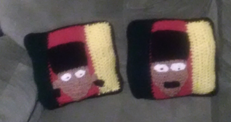 Stylish Crochet King & Queen Pillows that will add a pop to your sofa and your living room. The Crochet King & Queen Pillows are made with five colors of yarn. The pillows is 13 x 13