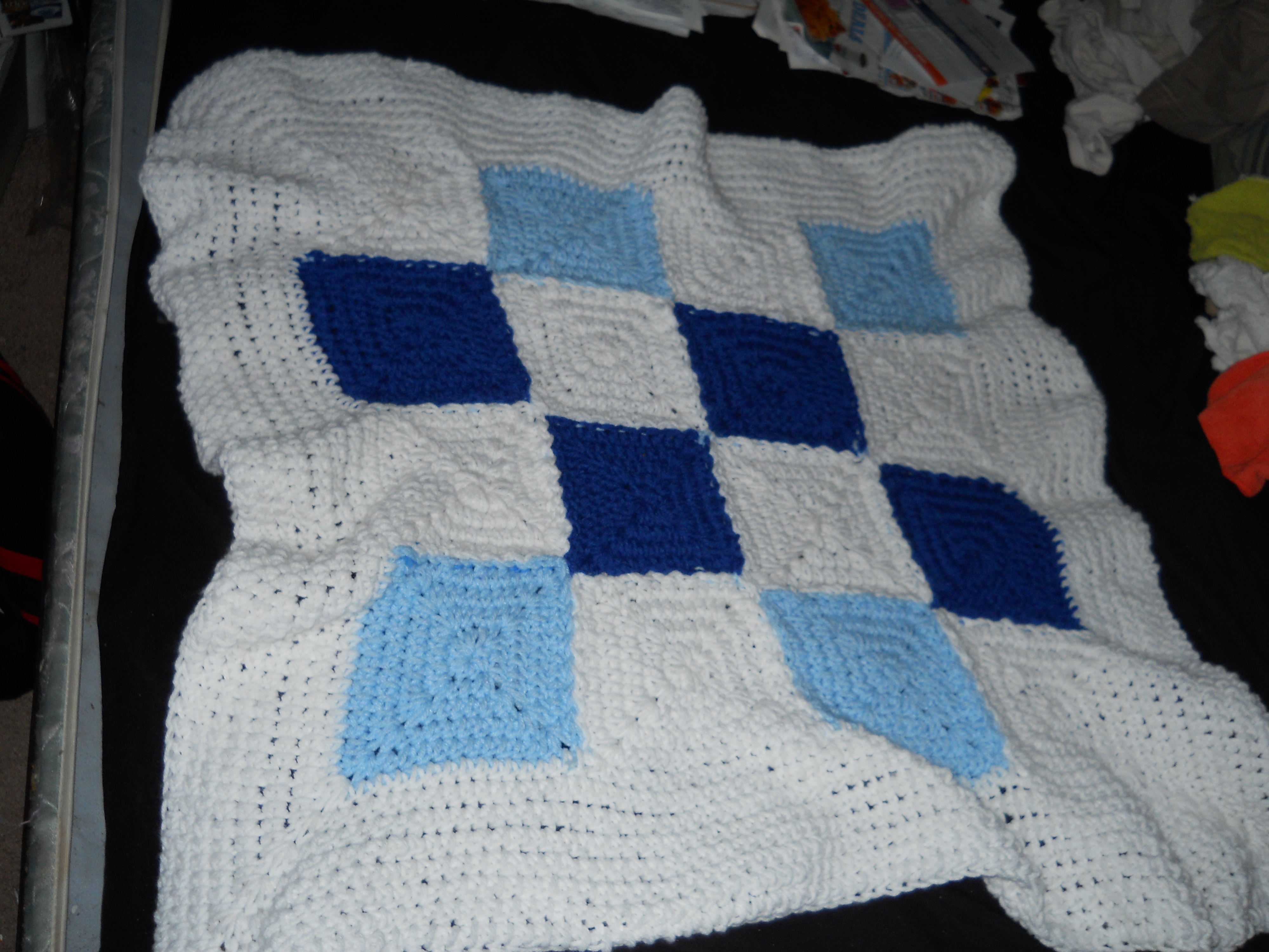 Crochet Baby Blankets are warm, soft and cozy. Made with red heart yarn. Size is 35 x 35. Please choose the three colors that you would like.